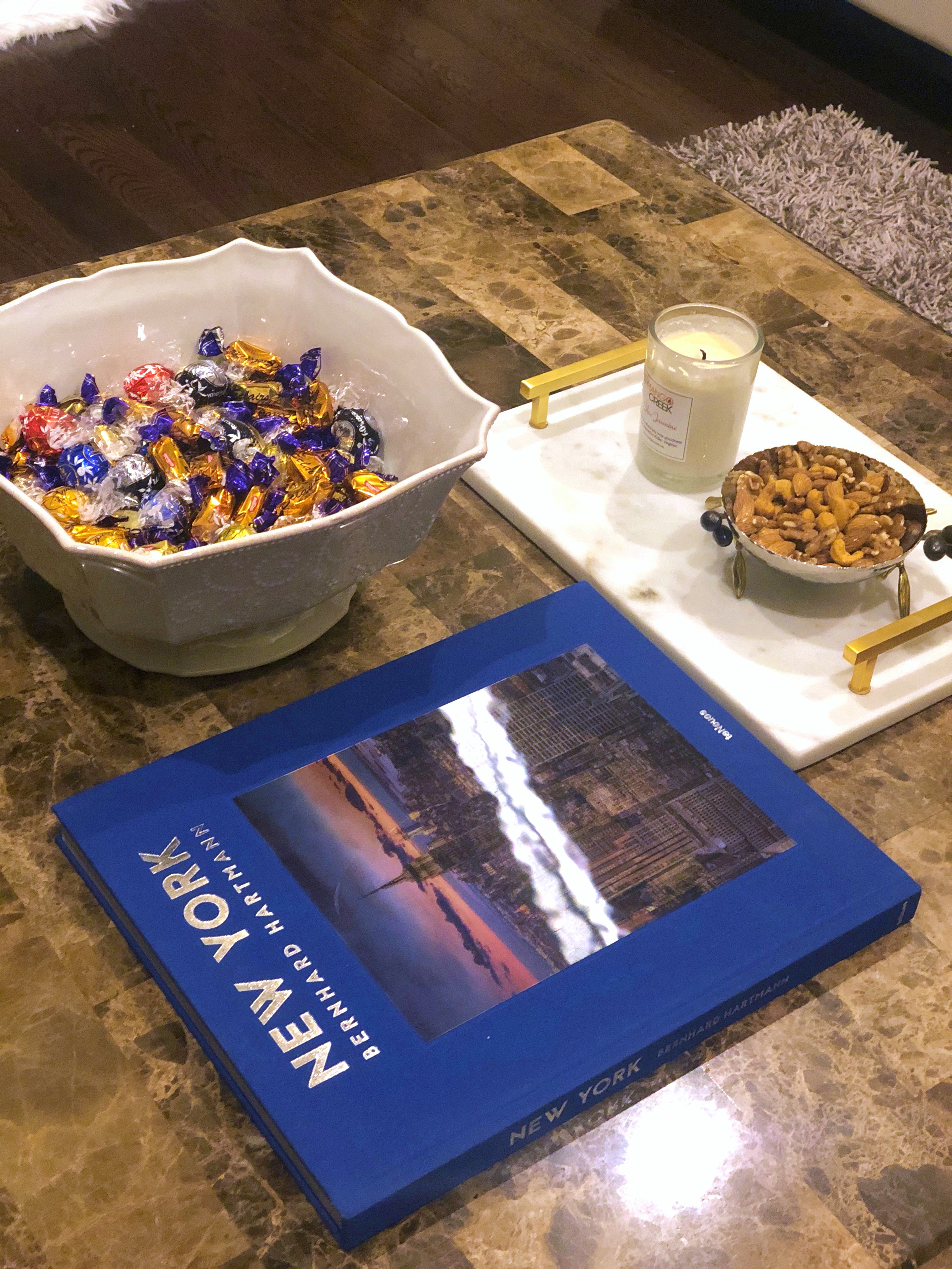 This contemporary hexagon shapes decorative tray is an elegant accent to my home decor. I have it in white and gold but I think navy and gold is so gorgeous as well.